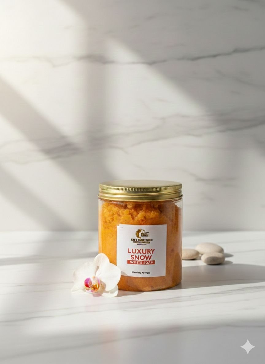 A rich, creamy paste soap crafted to glow, rejuvenate, and deeply cleanse the skin. Infused with glow-enhancing actives, it helps fade dullness, smooth uneven tone, and reveal a radiant golden complexion. Its luxurious lather purifies without stripping, leaving your skin soft, supple, and luminous.